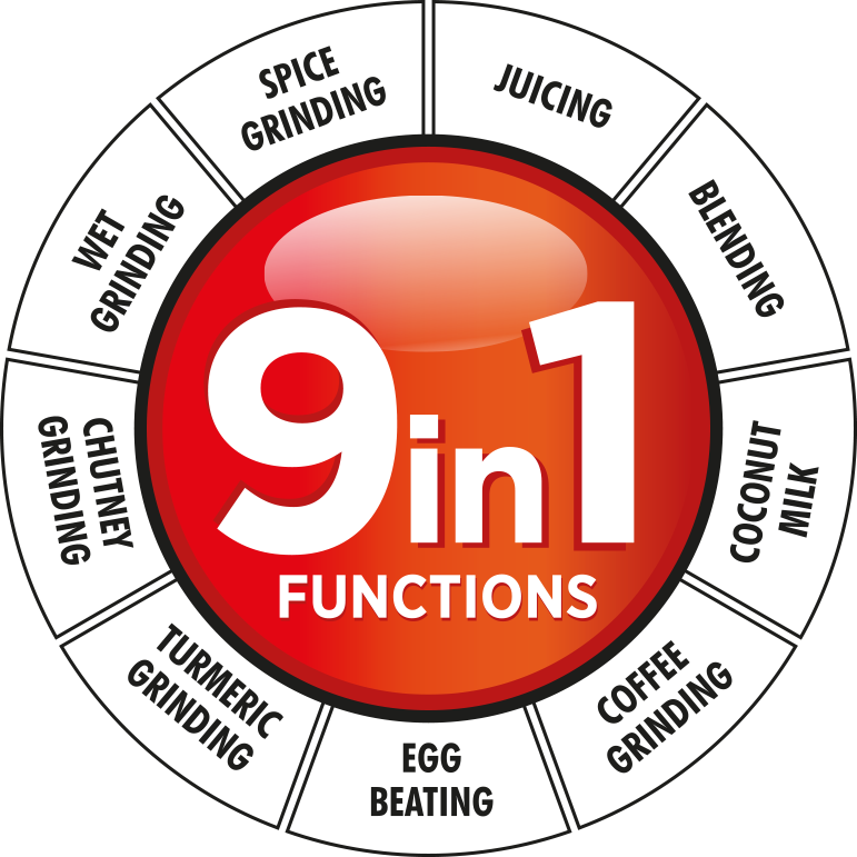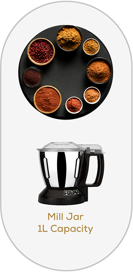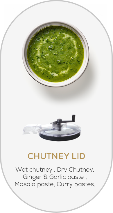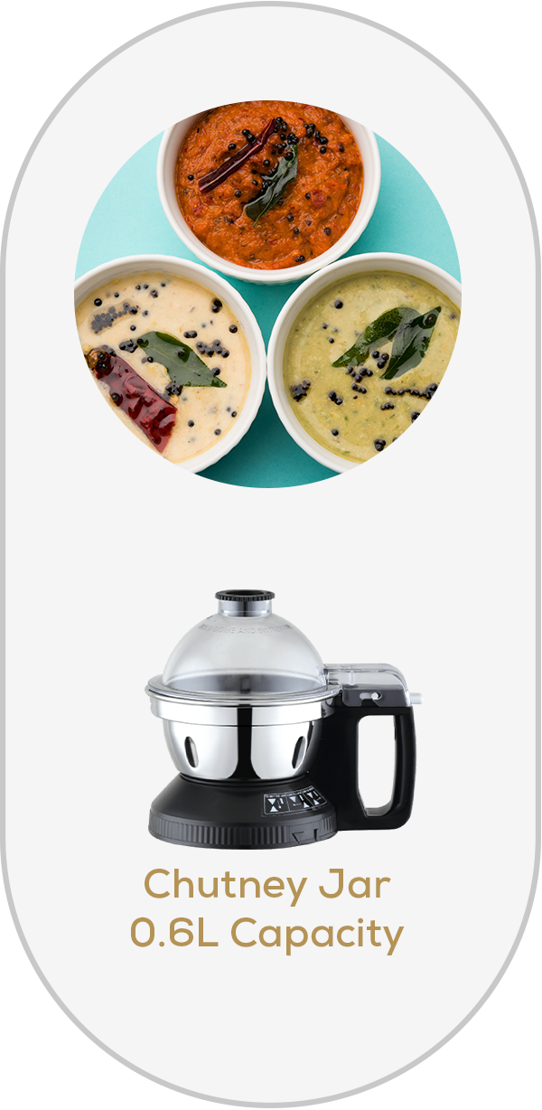 Ensure even mixing and convenient water adding while grinding chutneys with the 360-degree pusher.