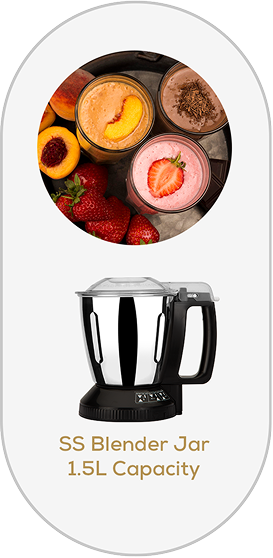 The ultimate blender jar that does it all! Whether you're blending fresh smoothies, grinding spices, or making dosa batter, this 1.5L jar is built for convenience. (On selective model)