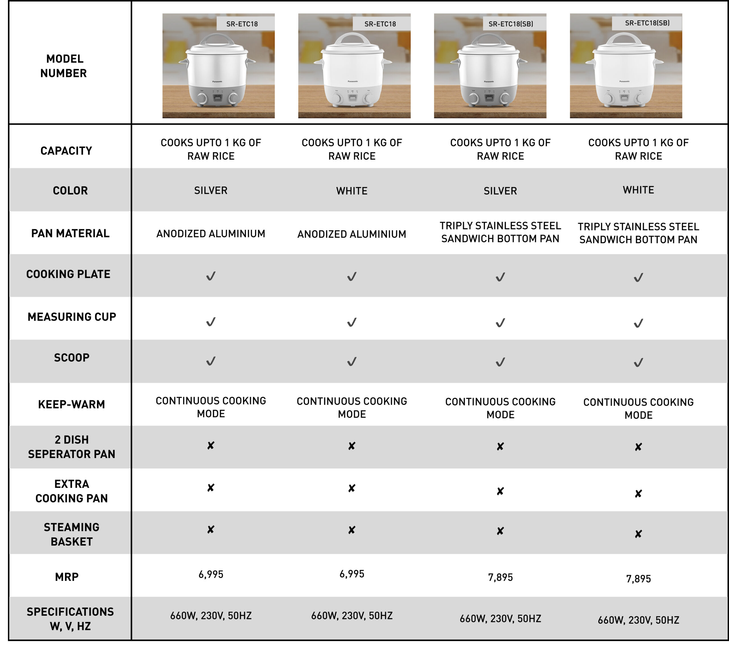 Comes with essential accessories like a cooking pan, scoop, measuring cup